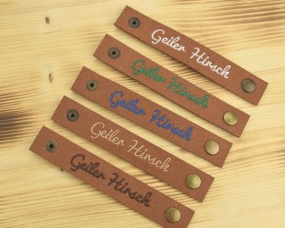 Bierkrugband aus Filz bestickt mit dem Spruch ‚Geiler Hirsch‘ .