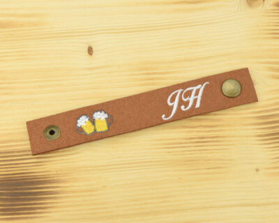 Mit unserem Bierkrugband ‚Initialen‘ aus Filz für den Henkel weißt Du immer welche Maß Deine ist!
