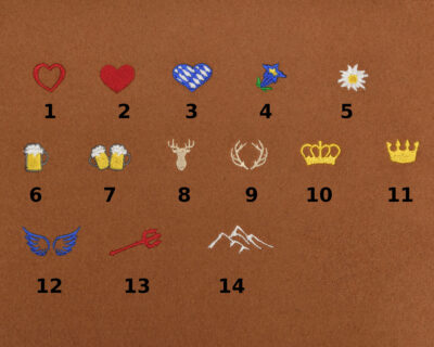 Das Symbol befindet sich immer links, die Initialen rechts auf dem Maßkrugband.