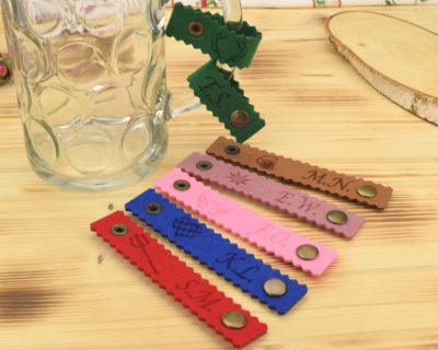 Mit unserem Bierkrugband ‚Initialen‘ aus Filz für den Henkel weißt Du immer welche Maß Deine ist!